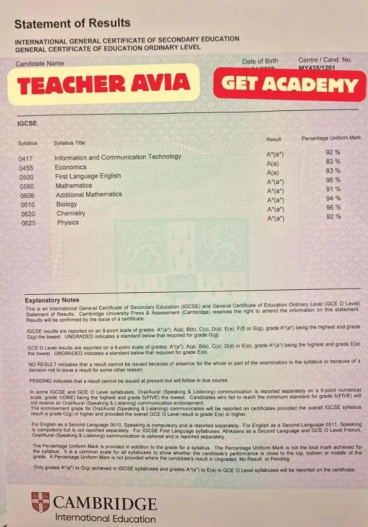 Getting an A in Maths doesn’t have to be a dream. Over the years, Teacher Avia’s students have achieved consistent grade jumps — many improving by 2 grades or more and scoring A or A* in their final exams.